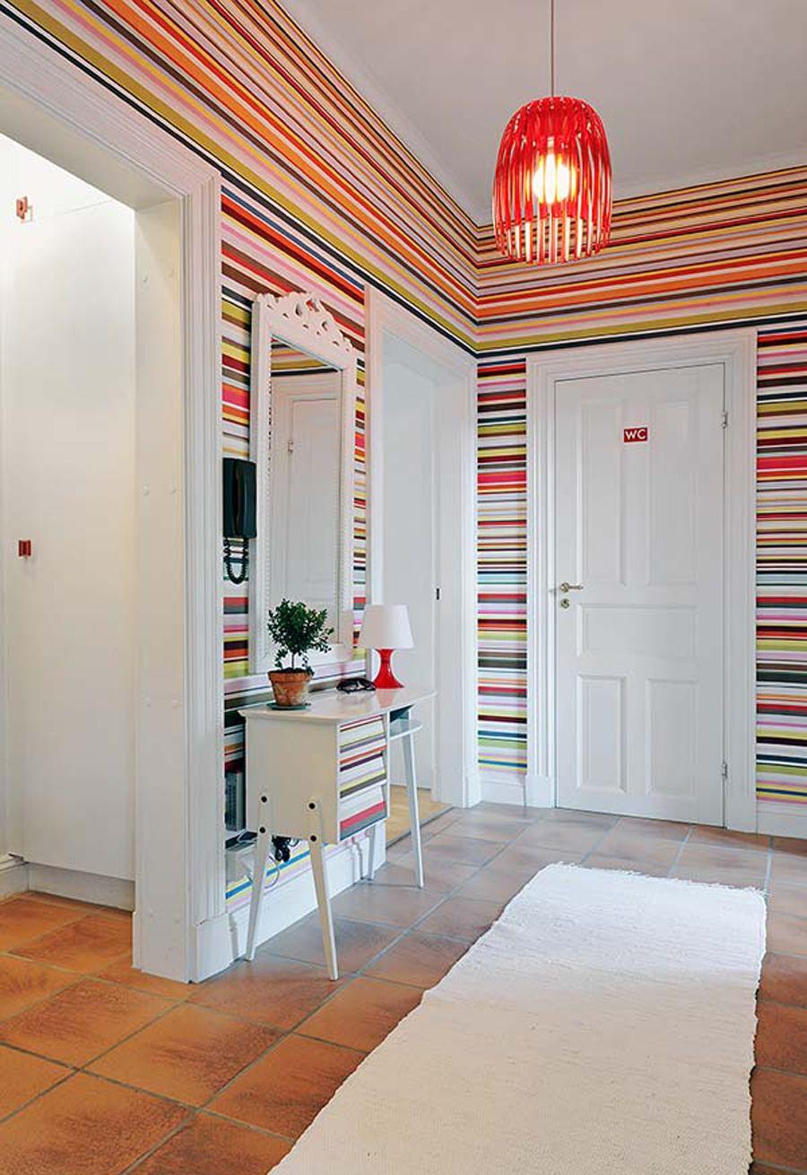Чтобы придать помещению более праздничный, яркий или необычный вид, его стены можно оформить гирляндами. Подойдут как цветные модели, так и однотонные. Использование гирлянд может придать коридору очень стильный вид, такое оформление будет хорошо смотреться в квартире-лофте.