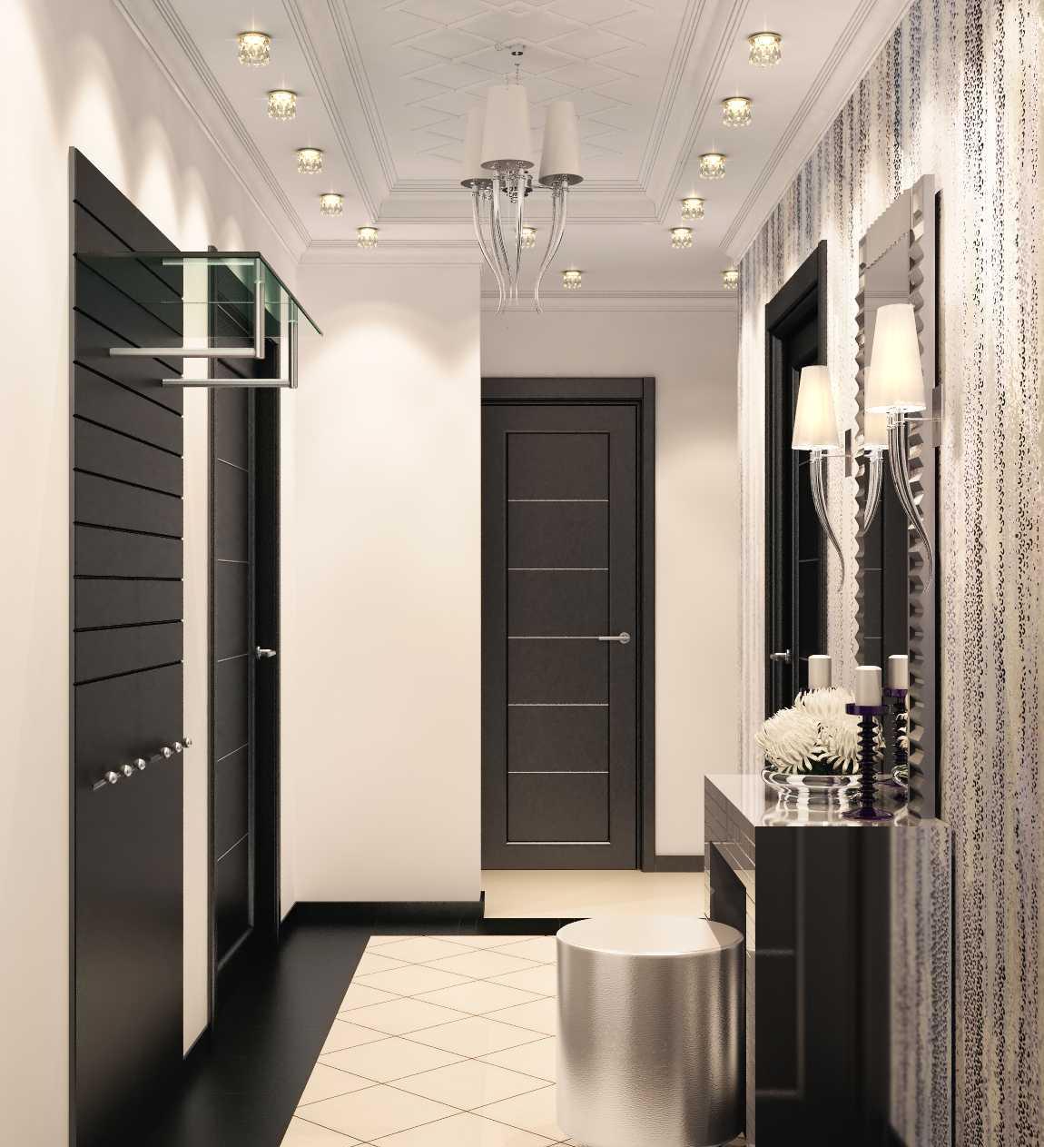 - коридор не имеет окон. Единственным вариантом попадания в него естественного освещения является двери с комнат и кухни.