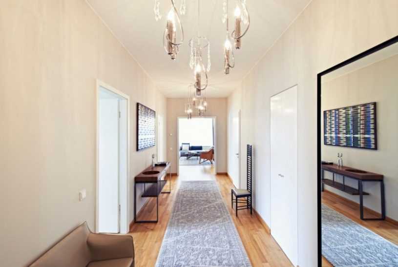 Очень часто прихожие и коридоры в квартирах представляют собой длинную и узкую комнату. Выбирать осветительные приборы для подобного пространства следует так, чтобы зрительно его расширить.