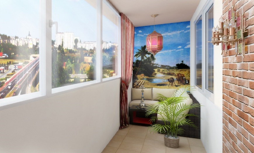 При облицовке можно пользоваться и пластиковыми панелями с имитацией фактуры кирпича. Если умело подобрать такую отделку, смотреться в интерьере балкона она будет весьма уместно. Монтаж этого материала предельно прост, весят такие панели меньше иного облицовочного продукта.