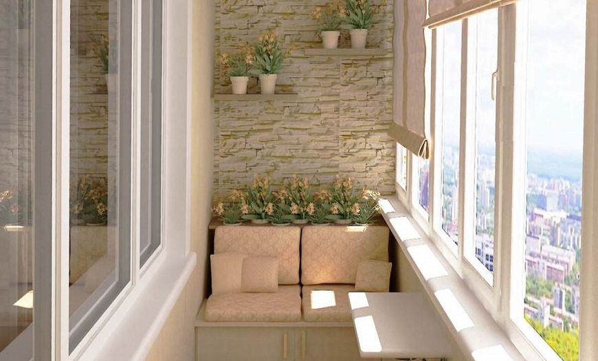Застекленный и утепленный балкон становится полноценной частью жилого пространства, потому что в нем находиться также комфортно, как и в квартире. Здесь устанавливают кресла-качалки, шкафы и тумбочки, небольшие спортивные комплексы, цветы и т.д.