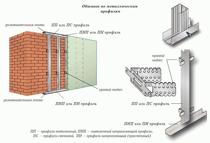 Для изготовления каркаса из металлических профилей для обшивки стен потребуется материалы: