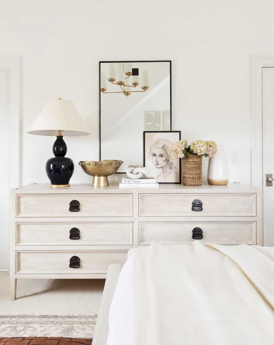 Большие двуспальные кровати и громоздкие шкафы убивают романтическую атмосферу. Идеальный выбор — компактная мебель нейтральных оттенков, которая органично вписывается в любой интерьер, от классики до модерна.