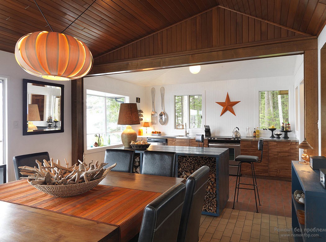 При планировании интерьера кухни в деревянном доме нужно учитывать несколько моментов:
