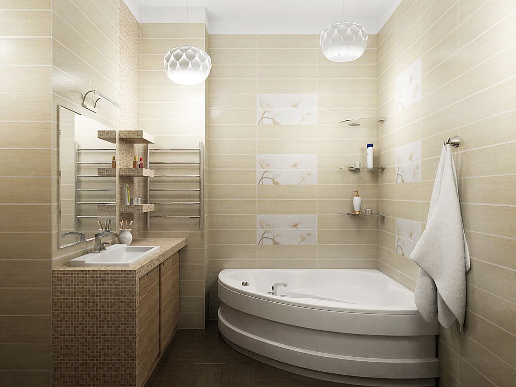 Плитка в ванную на пол стены или укладка до высоты мойки