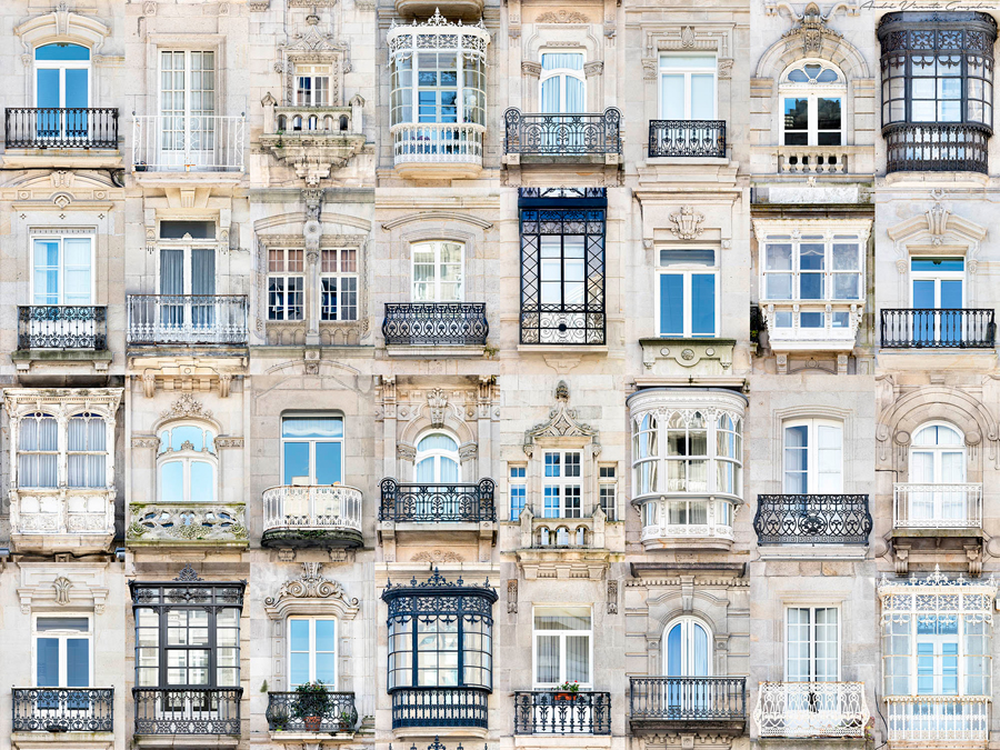 Город Виго Испания, туда реже добираются русские туристы, чем, например, в Барселону. Наличники на окнах в традиционном испанском стиле.