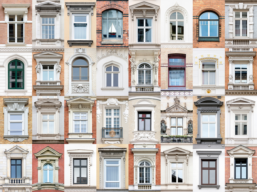 Резко контрастируют с испанскими, наличники немецкого города Гамбург. Даже окна в стиле Барокко, смотрятся строже и сдержаннее.