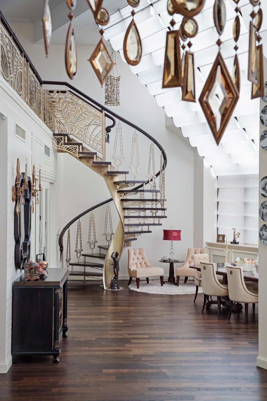 Многообразный и изящный ар-деко подчеркивает уровень престижности во всех деталях лестницы. Гармонично смотрятся, подчеркивая монументальность и благородство, маршевые лестничные конструкции.