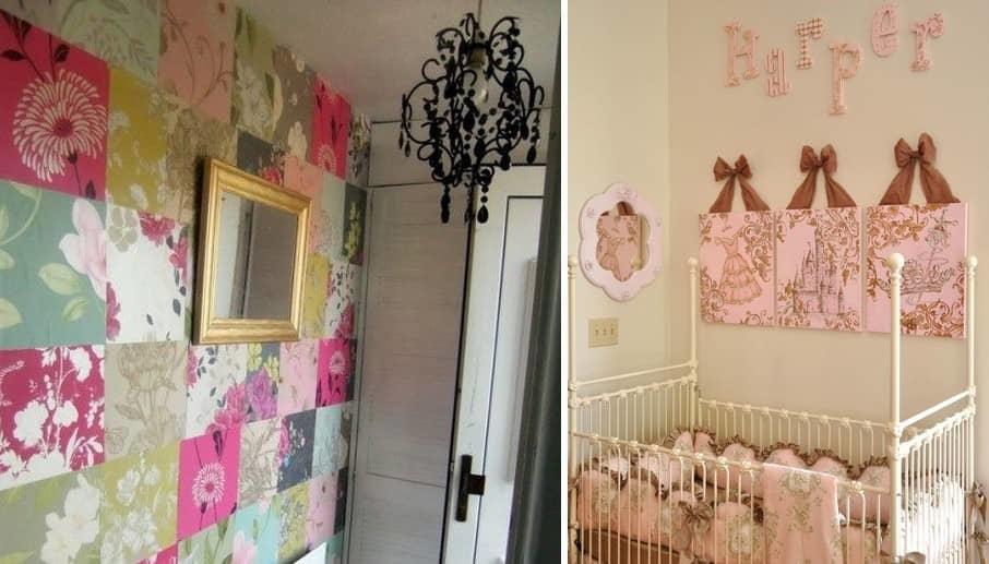 Одним из вариантов применения остатков может стать изготовление изголовья для кровати из листа фанеры, обклеенного обоями. Рисунок для этого подойдет яркий и замысловатый, который станет оригинальные акцентом в композиции спальни.
