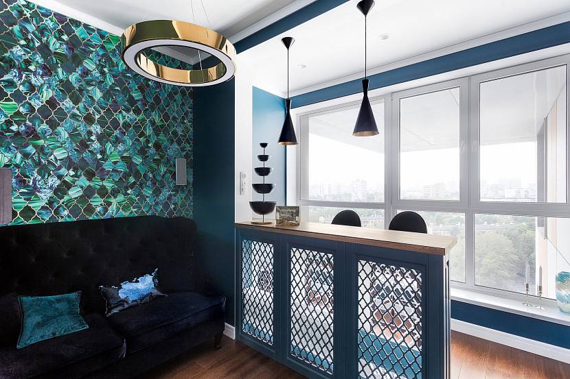 Барный столик можно разместить на границе комнаты и балкона, вместо перегородки между нимиИсточник static.tildacdn.com