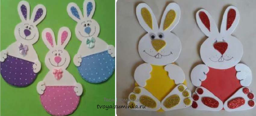 Вы можете придумать что-то свое, либо воспользоваться готовыми шаблонами зайчиков и цыпочек, представленных ниже.
