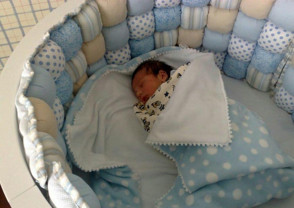 Объемные лоскутные коврики по периметру манежа-кровати защитят малыша от возможного травматизма