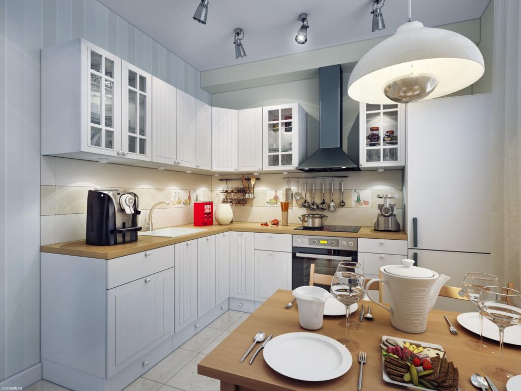 В квартире с большой квадратурой, широкими коридорами и огромными кухнями студиями можно легко поставить дополнительные двери. Но существуют и старые хрущевки, а так же дома брежневского периода, когда из узкого темного коридора возникает вход в маленькую кухню. Такой небольшой коридорчик необходимо оформить, так же как и стены кухни прилегающие к нему. Поклеить плавное продолжение кухонных полотнищ, за счет этого увеличить площадь кухонного помещения. При этом надо будет убрать дверной проем из коридора, так как он будет ограничивать пространство.