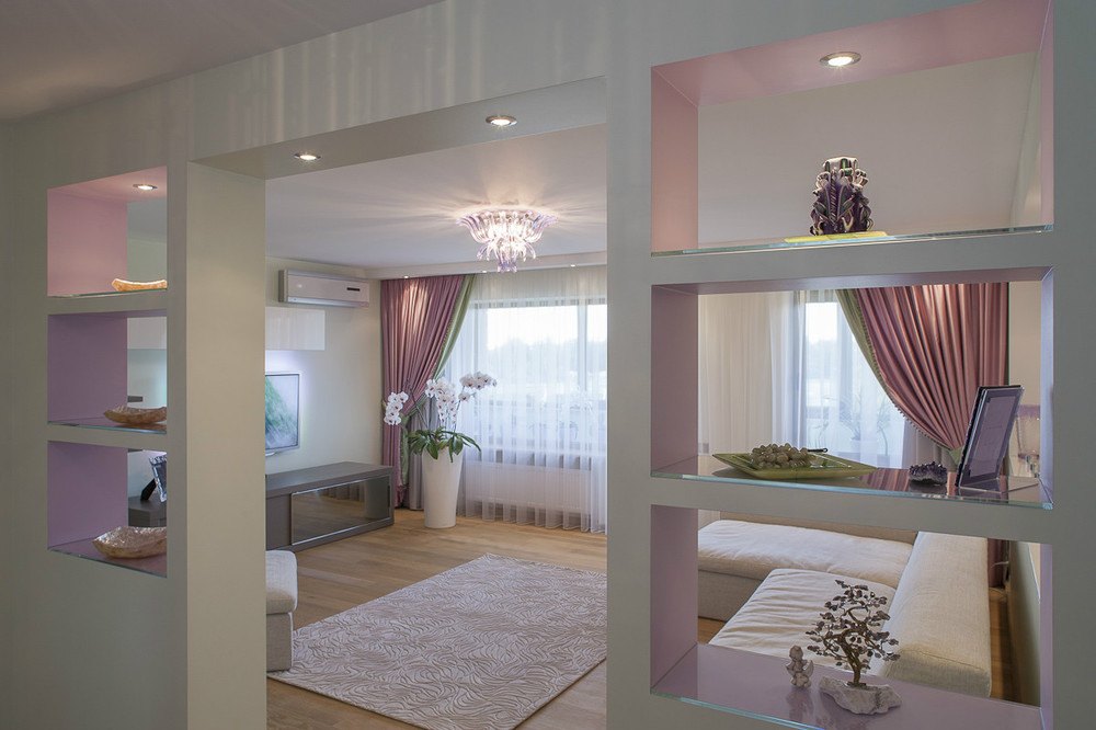 Зонирование гостиной гипсокартоном: простой способ разделения