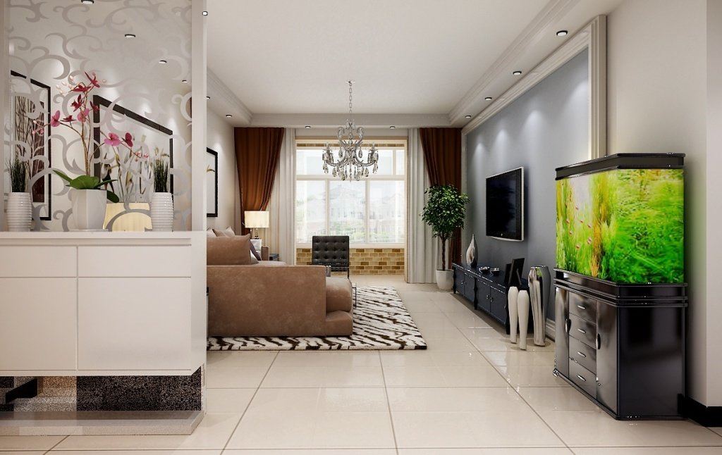Форма перегородки может быть любой. Это может быть потолочная конструкция в виде арки, которая будет опускаться на пол колоннами или небольшая стойка с полками для книг. Можно сделать невысокий барьер и поставить на него аквариум. Также в качестве дополнительных украшений можно использовать цветы, вазы, статуэтки, рамки с фотографиями.