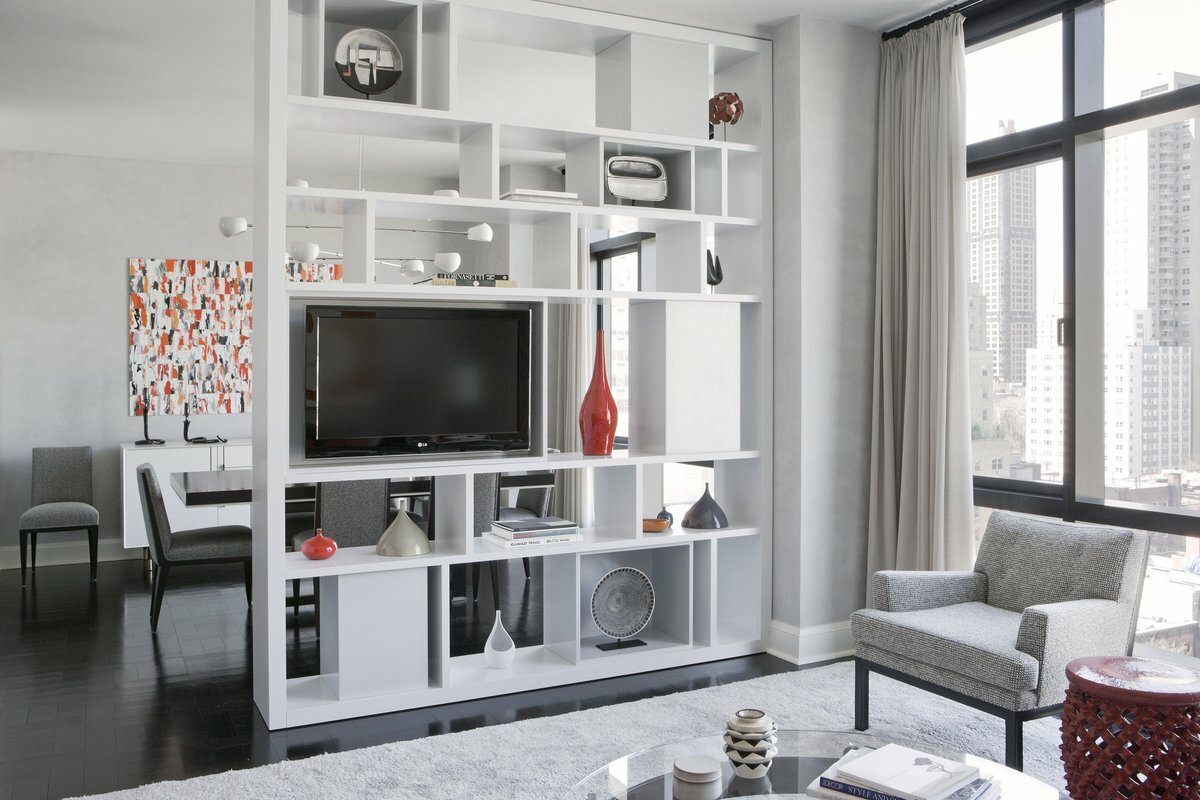 Интересный способ разделить гостиную — это построить низкую перегородку. Такая половина стены может отделить столовую от сферы отдыха без дополнительного затемнения комнаты. Кухонная перегородка также принимает форму стены, которая мягко закрывает комнату от для других функциональных пространств.