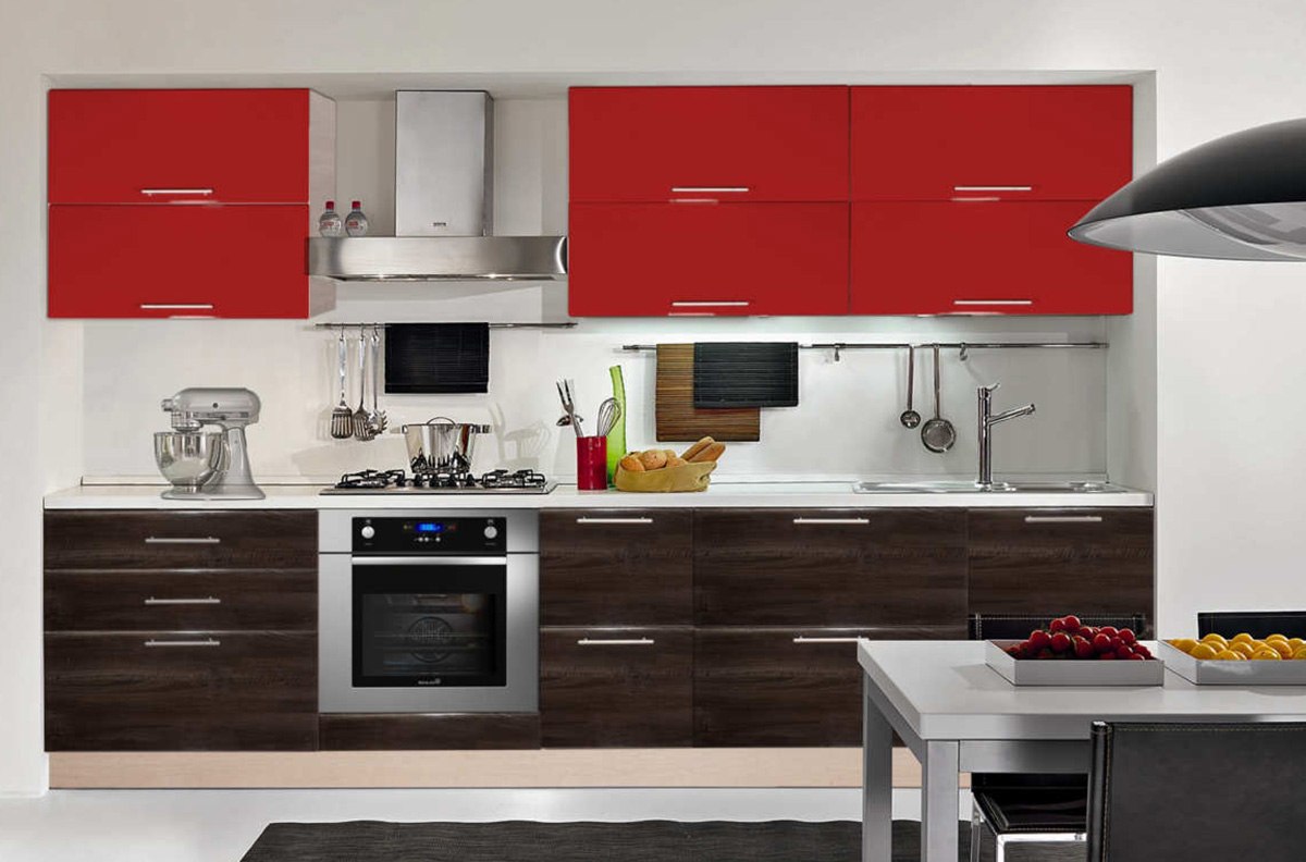 Однорядный корпус также является очень практичным решением. Расположение всех приборов, выдвижных ящиков и рабочей поверхности в одном ряду обеспечивает удобство использования кухни без необходимости долгих походов между мебелью, расположенной под разными стенами. Стоит выбирать модели с верхними шкафами, направленными к потолку. Тогда будете максимально использовать доступное пространство, а редко применяемые приборы не будут загромождать пространство на кухонной столешнице.