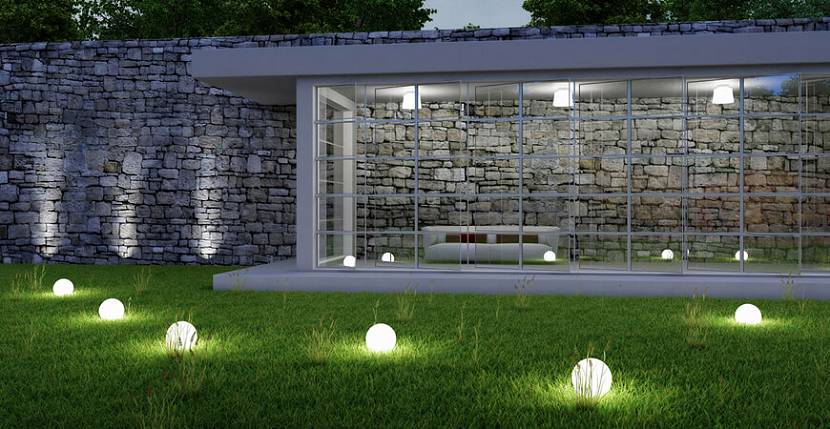 Важно продумать освещение. Все значимые объекты должны быть подсвечены: беседка, крыльцо, фонтан, пруд, дорожки, особенно главная.