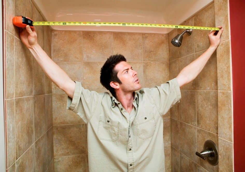 Высота пластиковой конструкции зависит от размеров встраиваемых устройств освещения и кривизны потолка. Желательно, чтобы она составляла не менее 2,3 м. Установка каркаса может быть произведена двумя способами: установить его над плиточным покрытием или непосредственно на нём. Оба варианта имеют свои недостатки: в первом случае возможна проблема монтажа стартовых панелей на каркас за счёт разницы на толщину плитки (около 1 см), во втором случае появляется риск повредить плиточное покрытие. Предлагается другой вариант. Нанести слой штукатурки, выше края плитки, ширина его должна быть около 5 см. В итоге плоскость поверхности штукатурки должна совпадать с плоскостью плиточной облицовки.