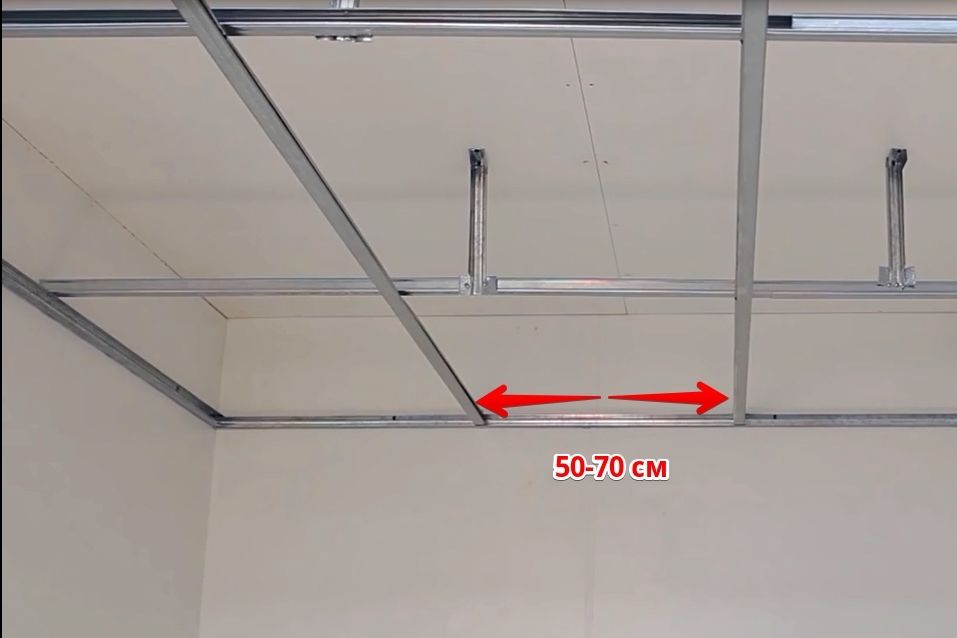 Может возникнуть вопрос — почему шаг установки профилей на стене равен 30-40 сантиметрам? Дело в том, что стена по сравнению с потолком находится в зоне риска. И нет никакой гарантии, что кто-то в нее не врежется, так что данный каркас должен быть крепким.