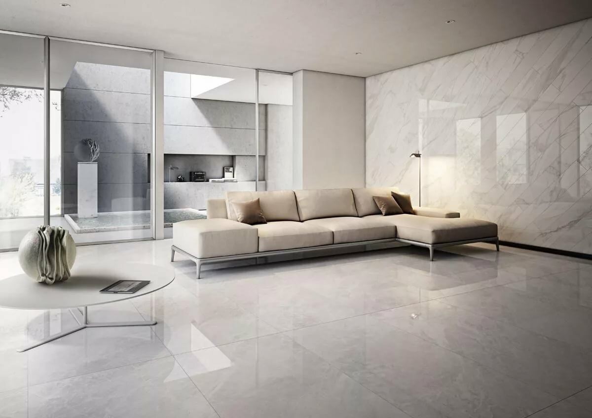 Устойчивая к истиранию керамическая плитка на полу в гостиной