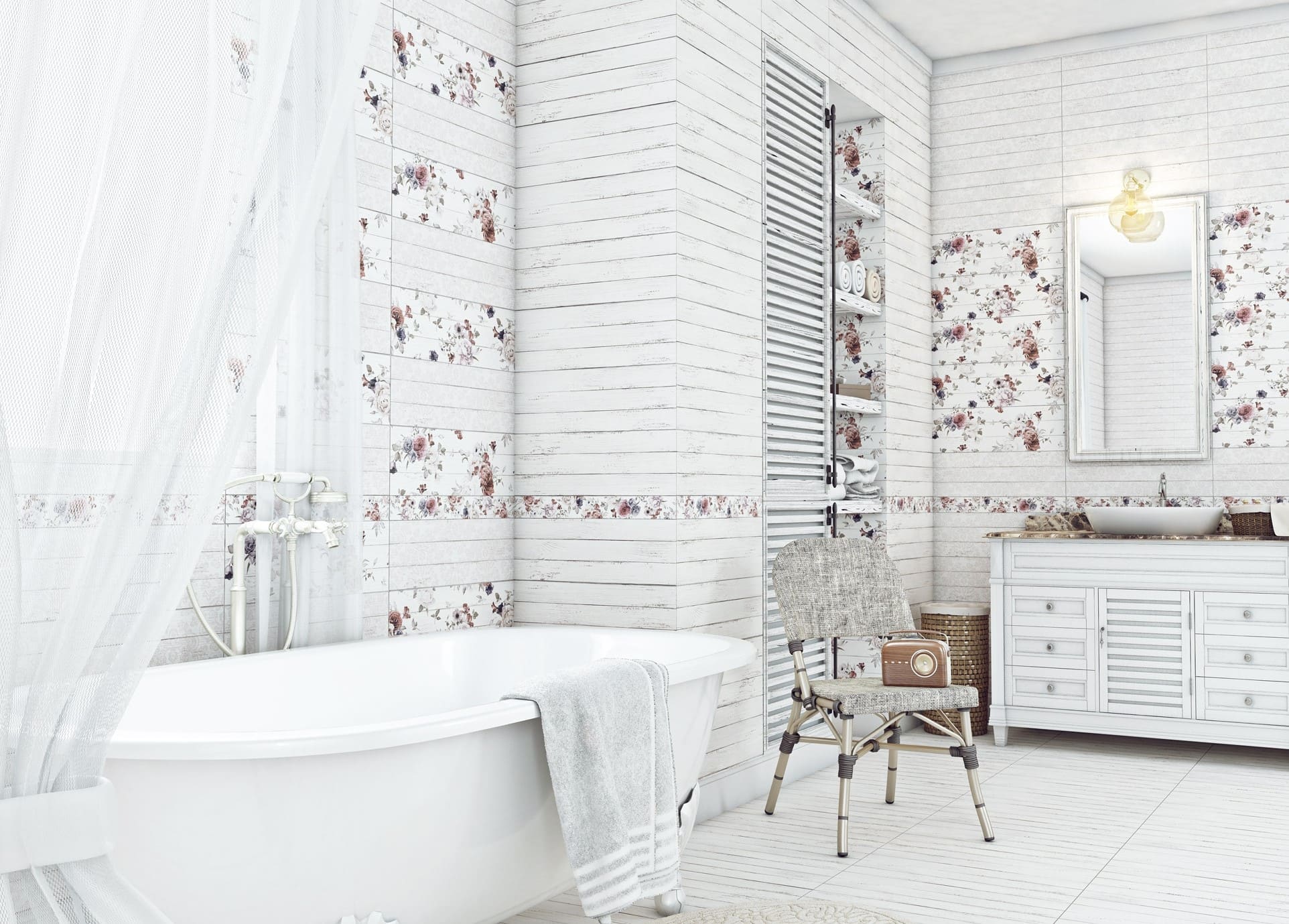 Плитка с растительным орнаментом для ванной в стиле прованс
