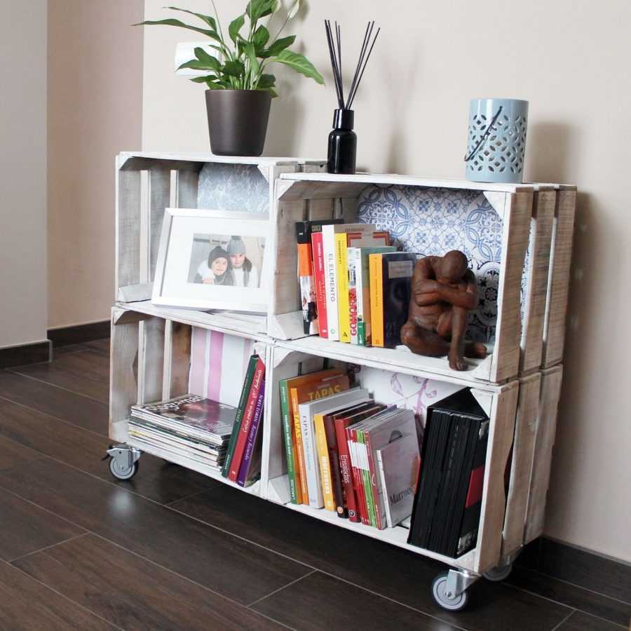 Деревянные ящики, которые выбрасывают продавцы фруктов и овощей помогут эффективно и красиво организовать хранение вещей в вашем доме. Ящики нужно предварительно обработать наждачной бумагой и покрасить в нужный вам цвет, после можно задекорировать их своими руками на собственный вкус.