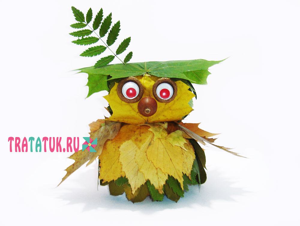 Такого замечательного ежика можно сделать из сушеных листьев и сложенной вдвое тарелки.