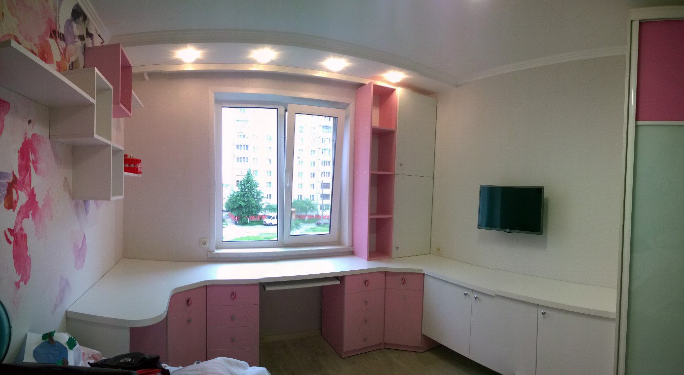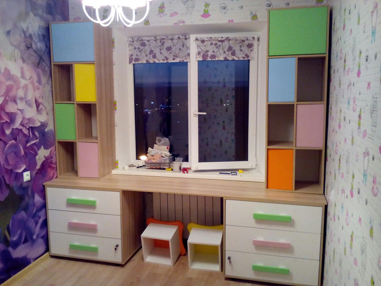 Подоконник в детской комнате можно переоборудовать под удобный и вместительный письменный стол