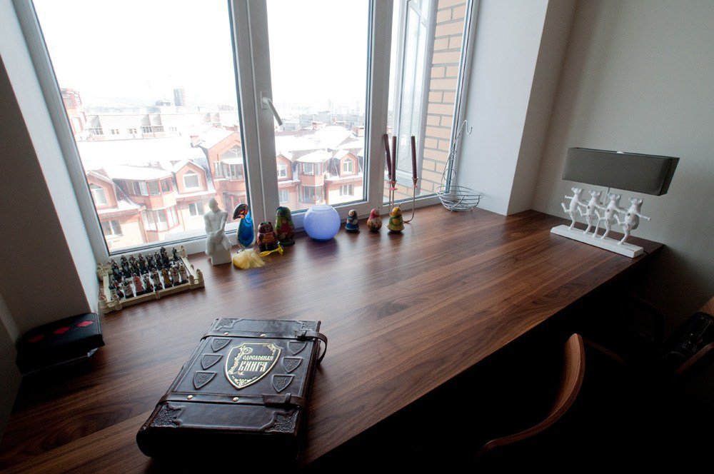 Замена обычного подоконника столешницей для создания полноценной рабочей зоны – отличная идея. В гостиной не всегда просто выделить место для домашнего офиса, а вот зона подоконника подходит как нельзя лучше. На встроенной столешнице удобно разместятся компьютер и оргтехника, а с двух сторон от окна прекрасно впишутся небольшие стеллажи или полки для документов и канцелярии. Работать в таком «кабинете» гораздо удобнее, чем за журнальным столиком или на диване. Здесь вы можете использовать полноценное офисное кресло, в котором не будет страдать ваша осанка.