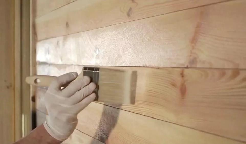 Особое внимание уделяется торцам. Они больше всего впитывают воду, поэтому приходится наносить несколько слоев