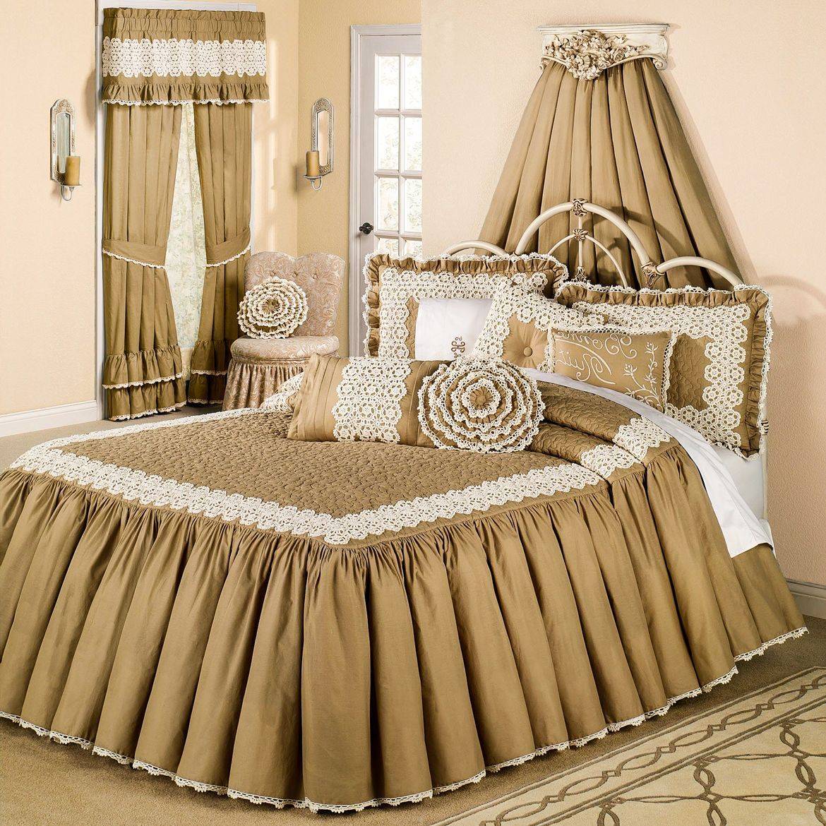 - Кровать в спальне ар-деко или барокко украшается гобеленовым, бархатным или атласным покрывалом. Изделия щедро украшаются кружевами, бахромой, декоративными шнуровками. Цвет полотен может быть насыщенным синим, бордовым, золотистым, коричневым однотонным или с мелким узором в виде вензелей, флористических мотивов;