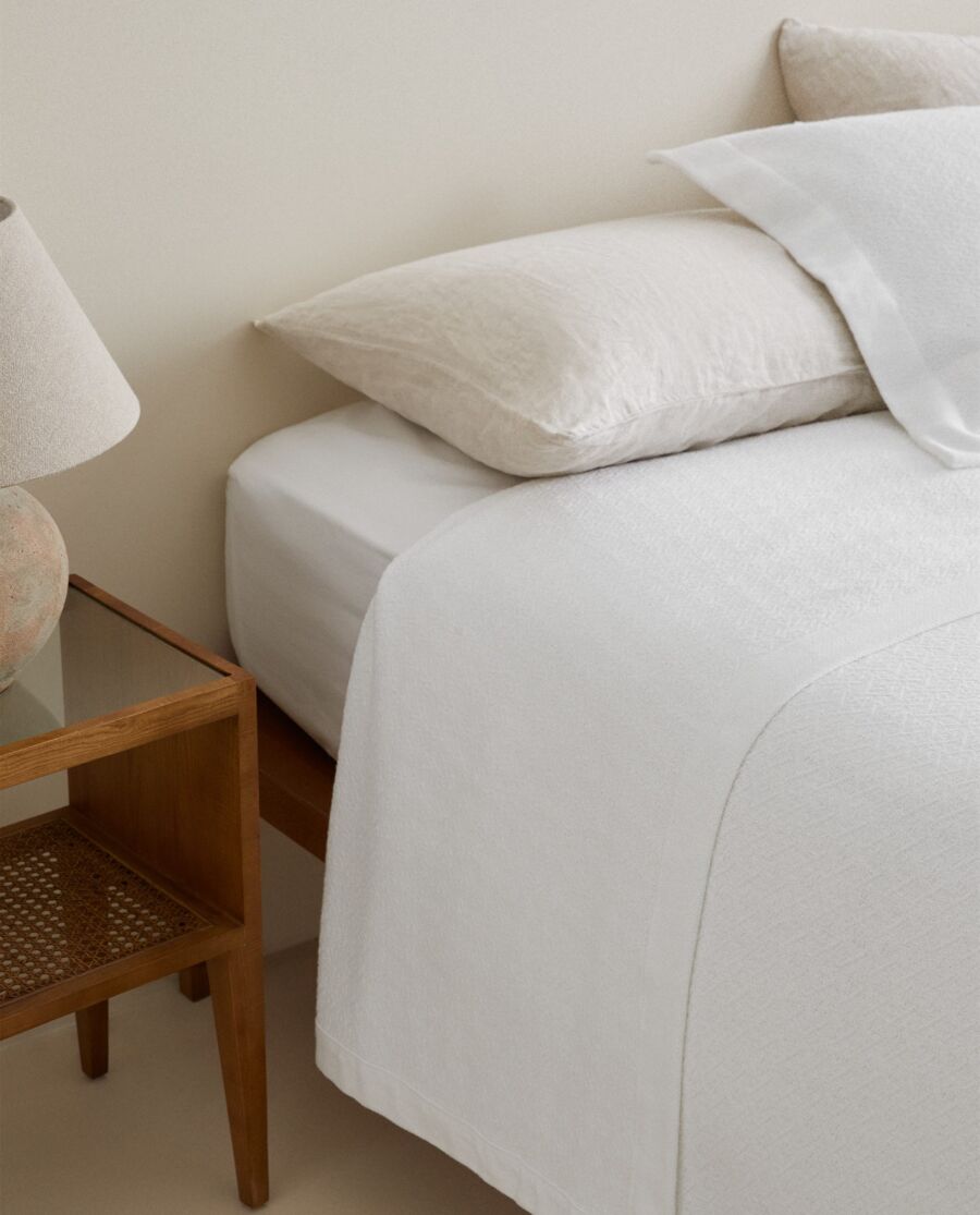 Рыхлая, текстурная поверхность с орнаментом — основное отличие модных покрывал на кровать в спальню. Подобная текстура гармонично сливается с модным направлением элегантной небрежности.