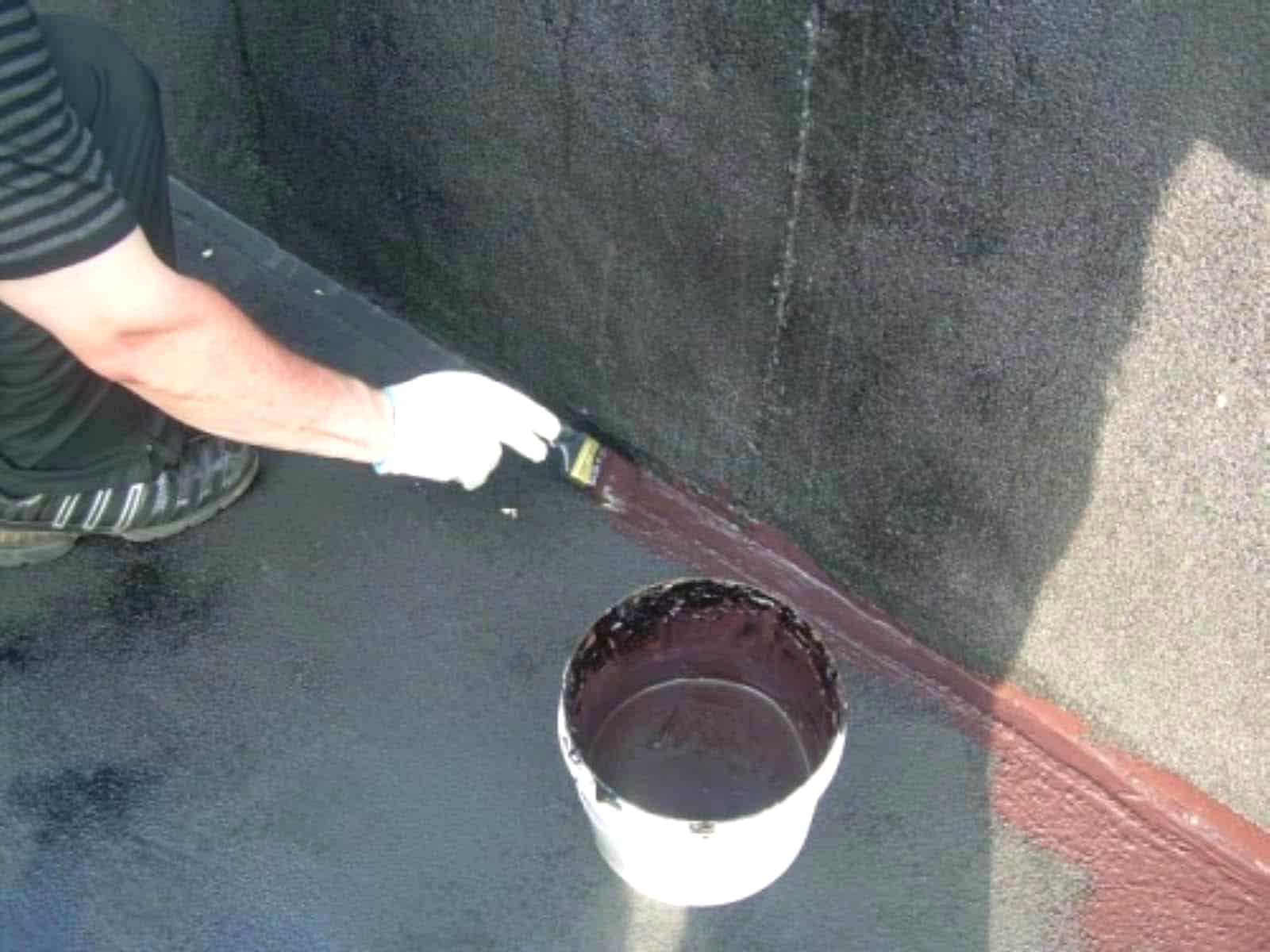 Если владелец помещения желает ускорить ремонтные работы, то он может сделать изоляцию из жидкой мастики. Материал обладает низкой стоимостью и долговечностью. Гидроизолирующий раствор наносится малярной кистью или валиком в несколько пластов с промежуточной сушкой. Время затвердевания слоев составляет от 4 до 12 часов (зависит от типа растворителя и производителя мастики).