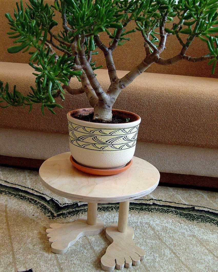 Но самый постой вариант, который украсит любое помещение, — это напольная подставка для одного цветка. Состоит она из основания, ножки, подпятника и самой стойки. Любая полка, созданная своими руками, обойдется существенно дешевле, чем купленная в магазине.