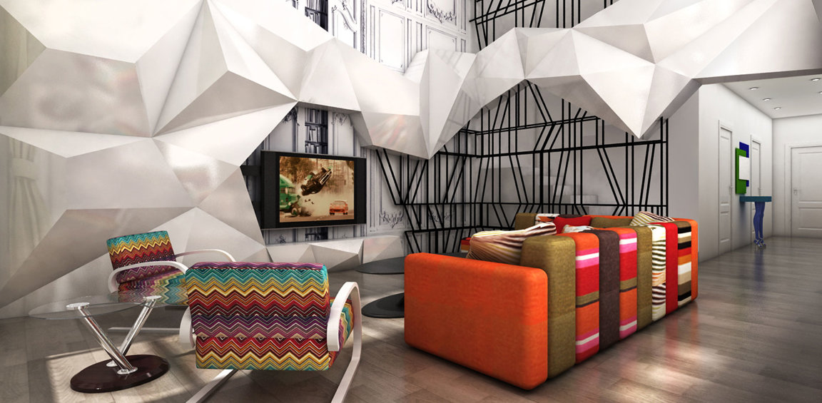 Дизайнерский поп-стиль «любит» просторные помещения, где с помощью зонирования отдельных участков выделяем разные уровни.