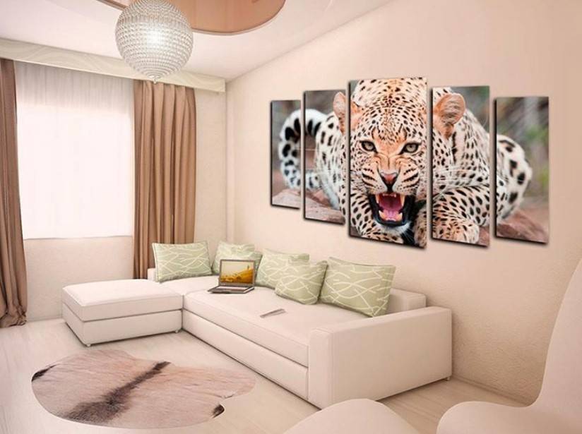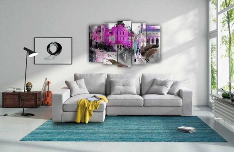 Яркие модульные картины — тренд для гостиныхИсточник 9692.ru