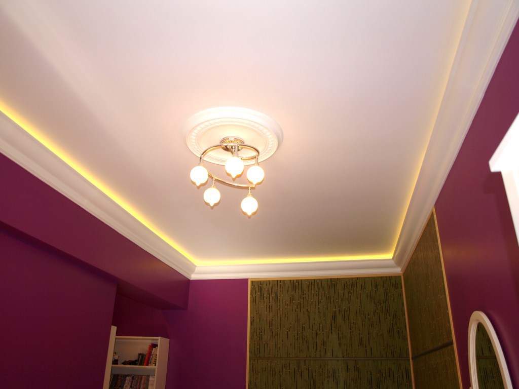 В квартирах с невысоким потолком следует быть внимательным при выборе конструкции, дыбы избежать уменьшение пространства комнаты и появления «давящего» потолка. Как правило, дизайнеры создают отдельные зоны с подсветкой. Это может быть немассивная конструкция по периметру или в центре, у стены в зависимости от решения интерьера. Таким приемом обычно подчеркивают определенную зону.