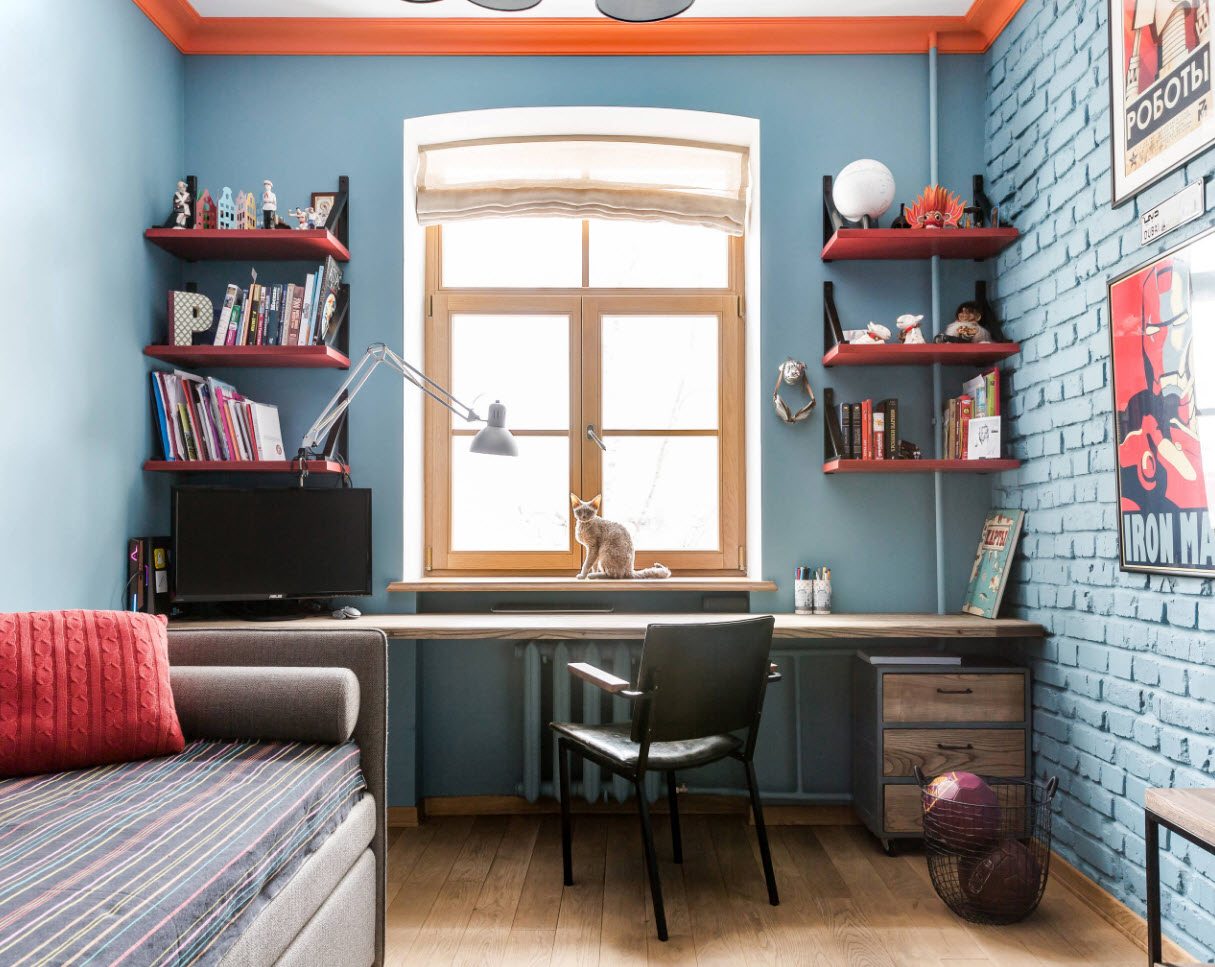 Пример того, как можно разграничить потолочную поверхность от стен при помощи тонкого белого плинтуса