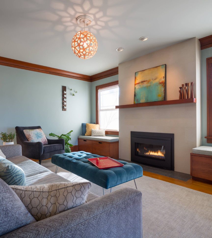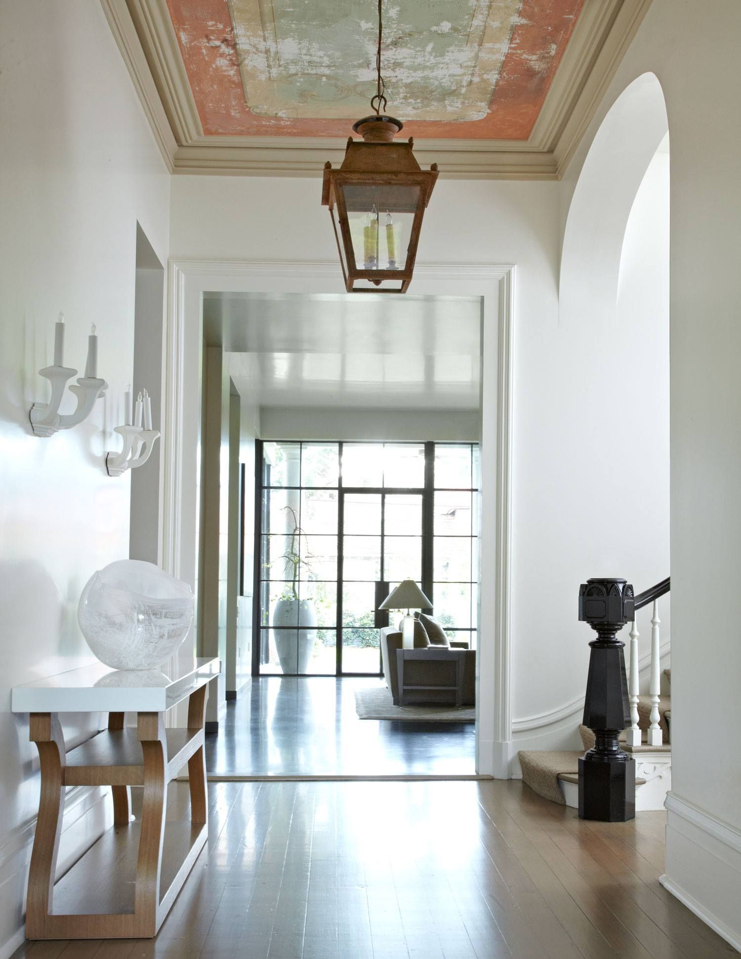 Пример того, как плинтус потолочный цветной в интерьере акцентирует внимание на форму комнаты Рекомендация: при покраске галтелей используйте мягкие тона — слишком яркие цвета могут выглядеть раздражающе