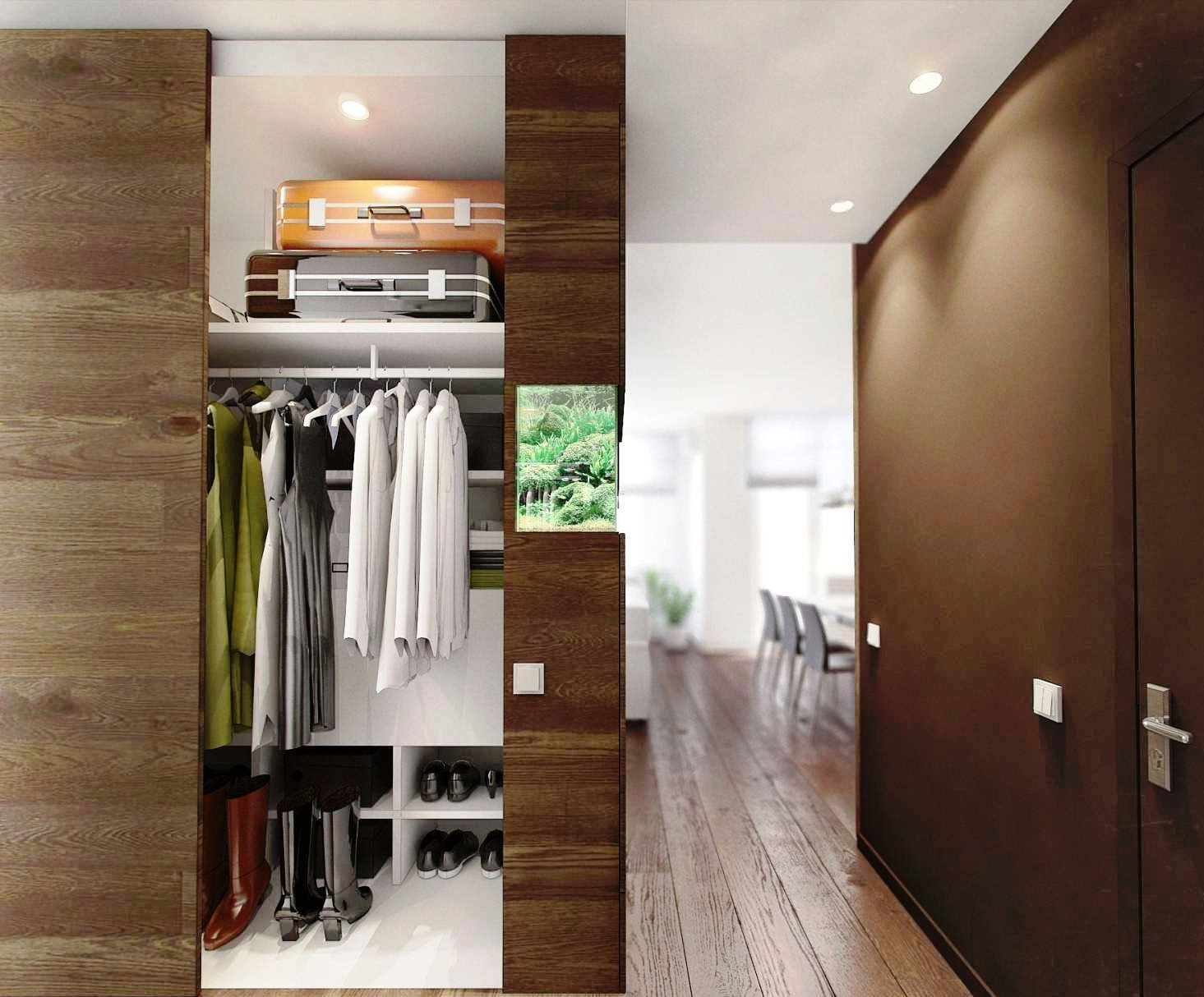 - Не следует загромождать прихожую мебелью. Достаточно поставить шкаф-купе, если для него есть место. Он отлично справится и с функцией зонирования. Если места мало, то можно использовать вешалки, ящики, полки.