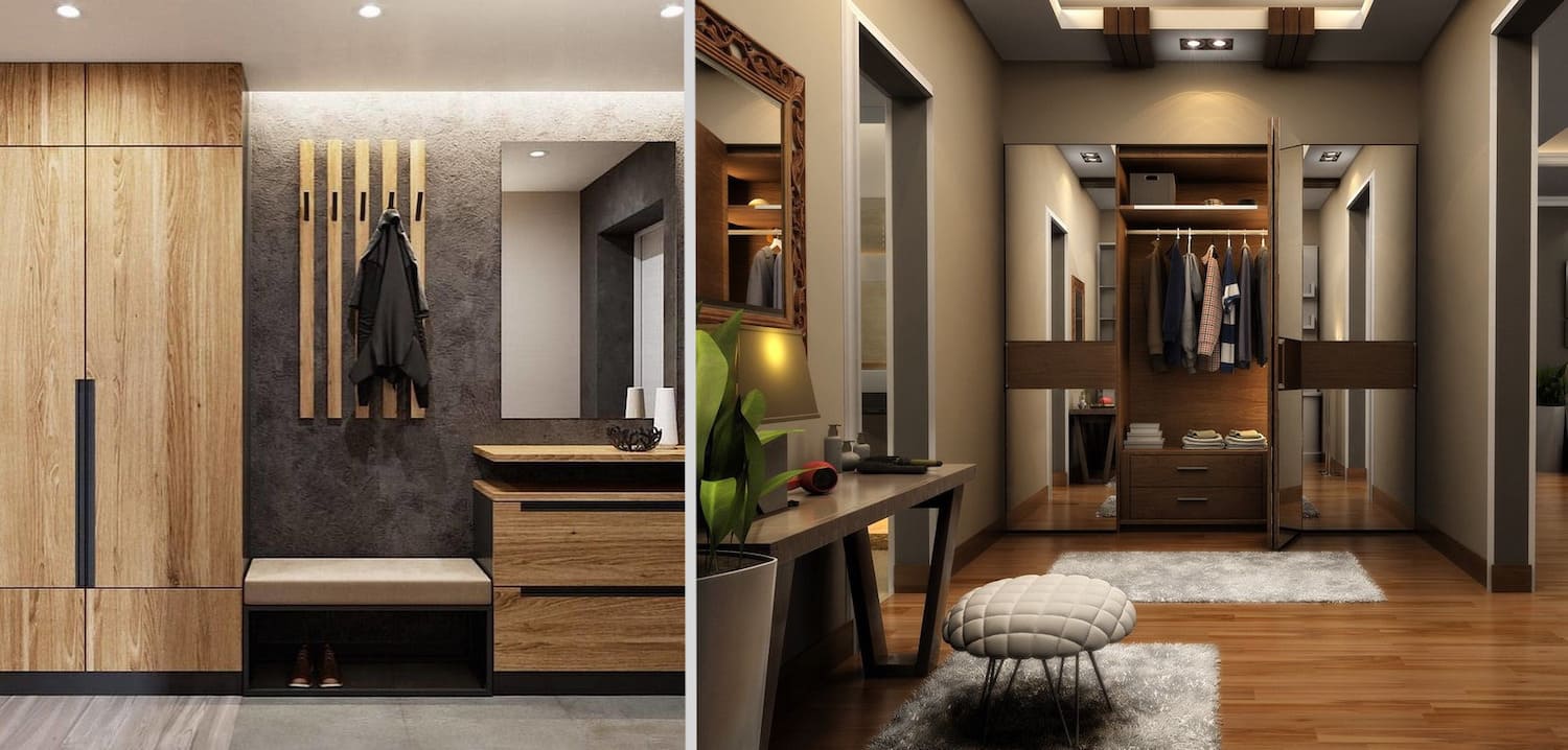 Дефицит места в прихожей не помешает создать сбалансированный и полноценный дизайн. Для этого нужно применять ключевые особенности внутренней отделки и зонирование на функциональные зоны, такие как: