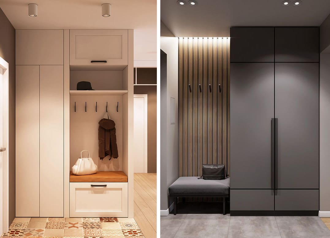 Современная мебель для прихожей со светлыми и темными фасадами выглядит более презентабельной