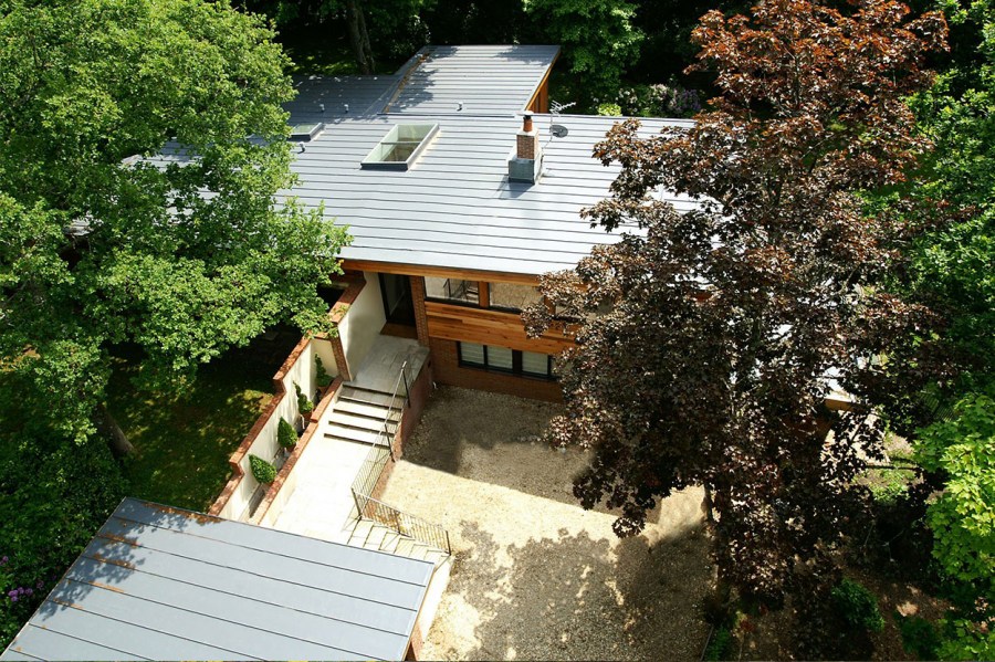 Небольшой уклон позволяет легко решить проблему водоотведения с крыши
