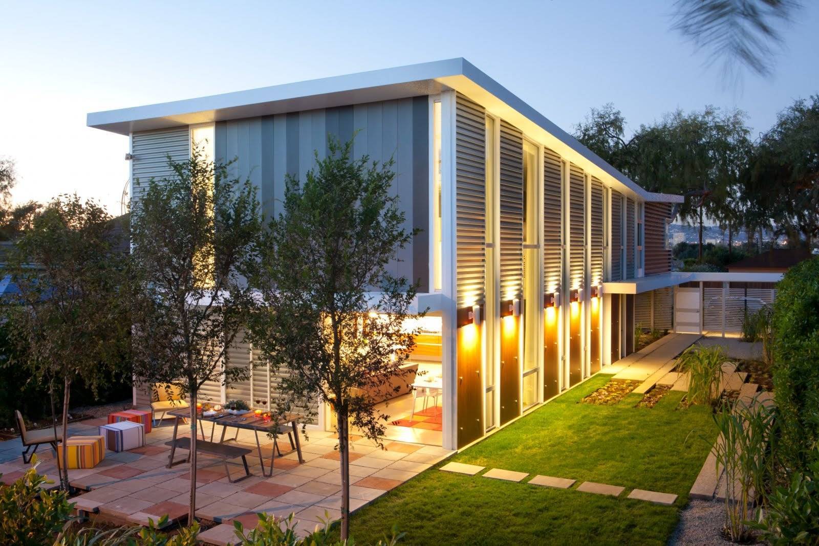 Цвет металлики в экстерьере прекрасного загородного дома стиля хай-тек