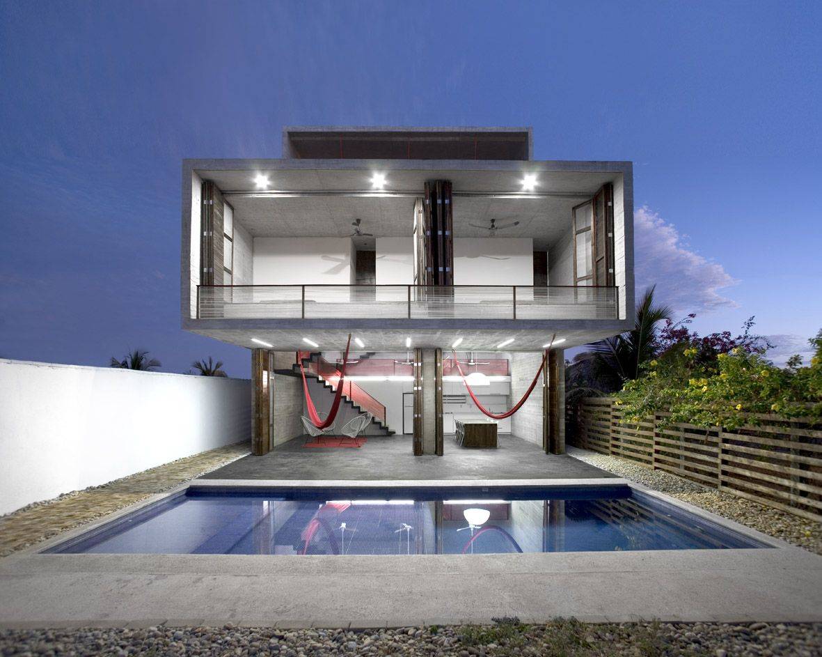 Самое популярное направление. Дома отличаются необычным видом и нестандартными пропорциями. Самые простые здания имеют форму куба, но большинство сооружений представляют собой сложнейшие конструкции из разноуровневых модулей в виде геометрических фигур. Для отделки используются самые современные материалы, важная роль отводится наружному освещению фасада. Коммуникации скрыты внутри здания, наружные стены гладкие и однотонные.