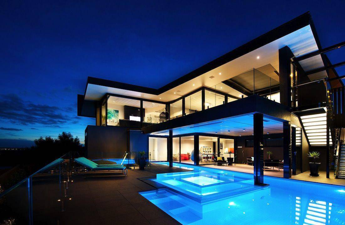 Стильный дом в стиле хай-тек с подсветкой всего фасада