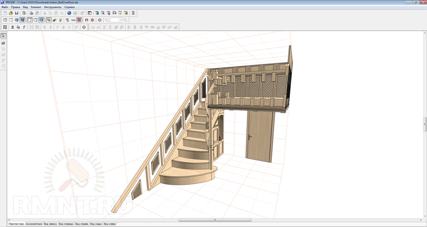 Практически любая лестница, сколь бы сложной она ни была, может быть представлена как совокупность более простых ступеней, тетив, перил и подступенков — досок, иными словами. Поэтому составить проект лестницы будет наиболее просто тем мастерам, которые имеют опыт работы в программах по созданию мебели. Хорошо для этих целей подходит небезызвестная PRO100: набросать конструкцию простейшей лестницы в ней можно за 30–40 минут, даже новичку освоиться в этой программе не составит большого труда.
