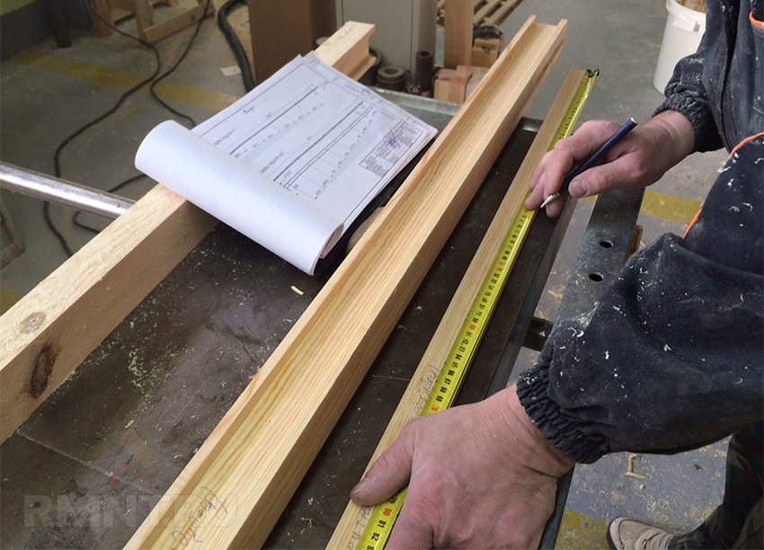 - Изготовление тетивы – трудоемкий процесс. Наметьте линии распила, прижмите направляющий брус и сделайте эталонную тетиву. По ней сделайте и другие.