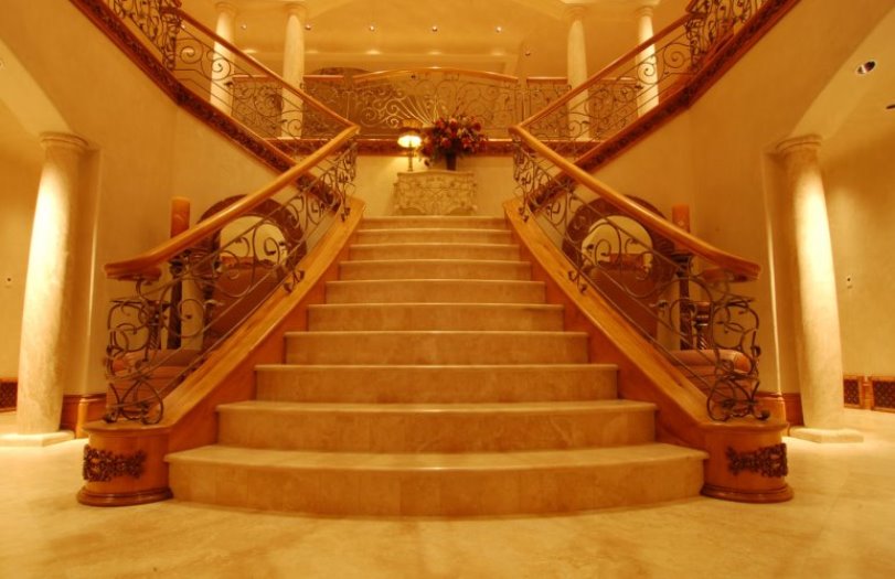 Красиво и органично в классический интерьер впишется лестница из дорогостоящей породы дерева